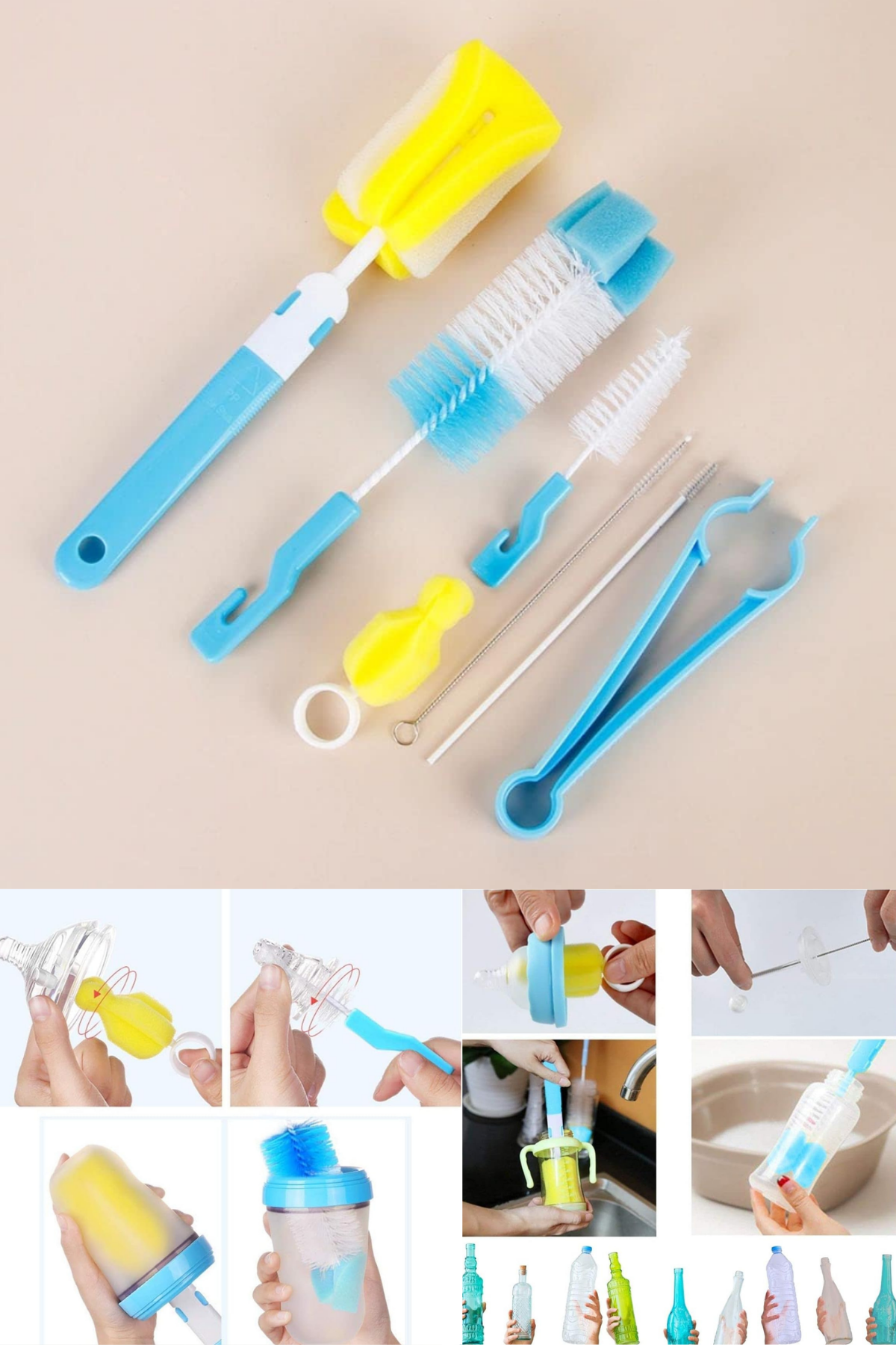 4.Ürün Paket İçeriği: 1 * 7 Parça Biberon Kavanoz Termos Suluk SürahiBardak Şişe İçi Temizleme Fırçası Aparatı Seti
